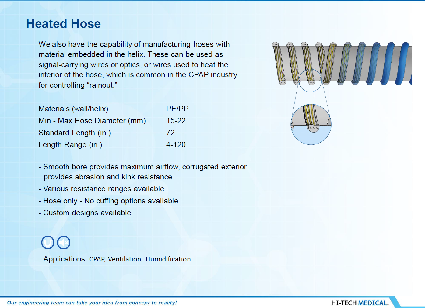 Heated HoseABOUT Hi-Tech Medical:Hi-Tech Medical is a manufacturer of hREAD MORE >Heated HoseABOUT Hi-Tech Medical:Hi-Tech Medical is a manufacturer of hREAD MORE >