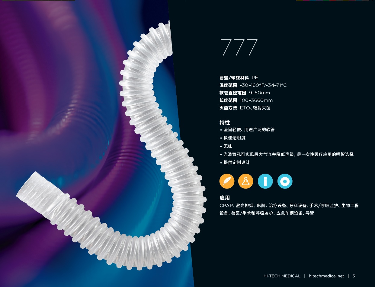 第777章产品简介:坚固轻便、无味、耐化学腐蚀、环氧乙烷、可高压灭菌广泛应用:CPAP、通气管、激光排烟、麻醉、治疗设备、牙科设备READ MORE >第777章产品简介:坚固轻便、无味、耐化学腐蚀、环氧乙烷、可高压灭菌广泛应用:CPAP、通气管、激光排烟、麻醉、治疗设备、牙科设备READ MORE > -