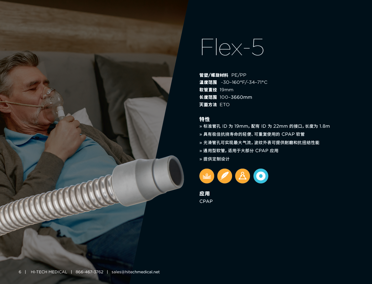 Flex-5产品简介:坚固轻便、无味、耐化学腐蚀、环氧乙烷、可高压灭菌广泛应用:CPAP、通气管、激光排烟、麻醉、治疗设备、牙科设备READ MORE >Flex-5产品简介:坚固轻便、无味、耐化学腐蚀、环氧乙烷、可高压灭菌广泛应用:CPAP、通气管、激光排烟、麻醉、治疗设备、牙科设备READ MORE > -