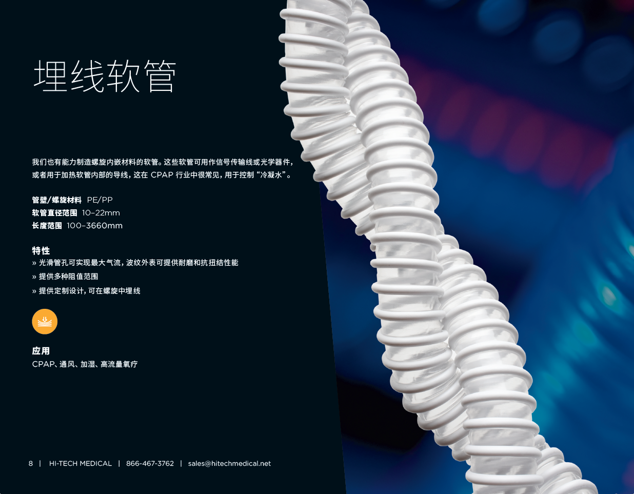 埋线软管产品简介:坚固轻便、无味、耐化学腐蚀、环氧乙烷、可高压灭菌广泛应用:CPAP、通气管、激光排烟、麻醉、治疗设备、牙科设备READ MORE >埋线软管产品简介:坚固轻便、无味、耐化学腐蚀、环氧乙烷、可高压灭菌广泛应用:CPAP、通气管、激光排烟、麻醉、治疗设备、牙科设备READ MORE >
